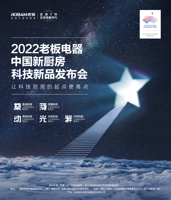 简介:老板电器举办2022中国新厨房科技新品发布会,推出系列新品,并推出了全新的沟通口号:“让科技厨房的起点更高点”