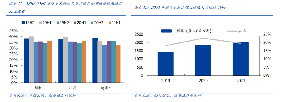 节点财经了解到,其他厨卫品牌工程渠道收入占比大概约10%,老板电器基于自身地位、知名度等多重优势,与碧桂园、万科、融创、保利等多家大型地产开发商签署战略合作协议,2020年已经将工程渠道收入占比拔高到22.6%,在精装修渠道市占率高达35%,雄居行业首席。