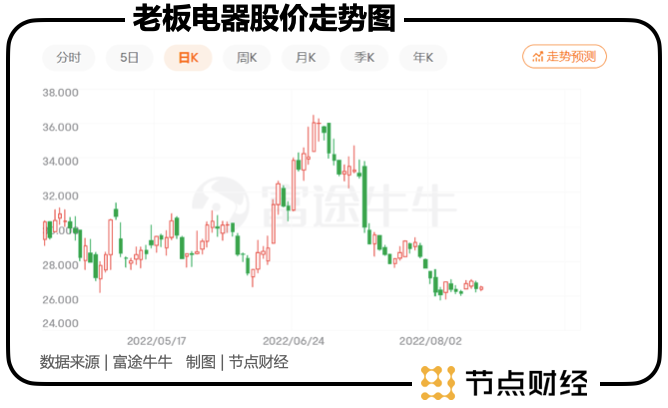 老板电器的股价亦在年度快报数据披露后,几乎连续十个交易日下挫。