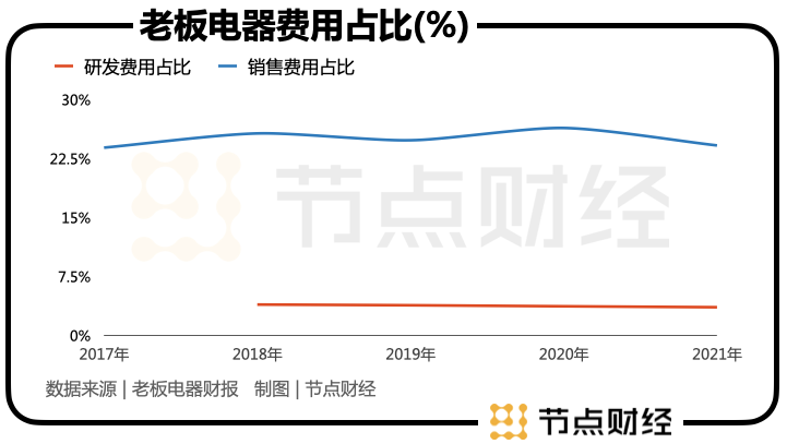 不过,反馈到客观的数据上,老板电器对营销的重视程度远高于研发。