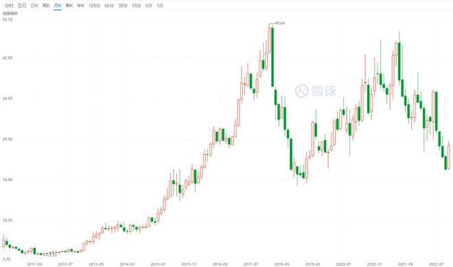 业绩的萎靡不振,让老板电器股价持续承压。2021年7月以来,老板电器股价由48.55元一路下跌至20.3元,股价回到了2015年。