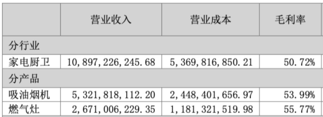 如果看老板电器的收入结构,油烟机和燃气灶依然是大头,占比70%。