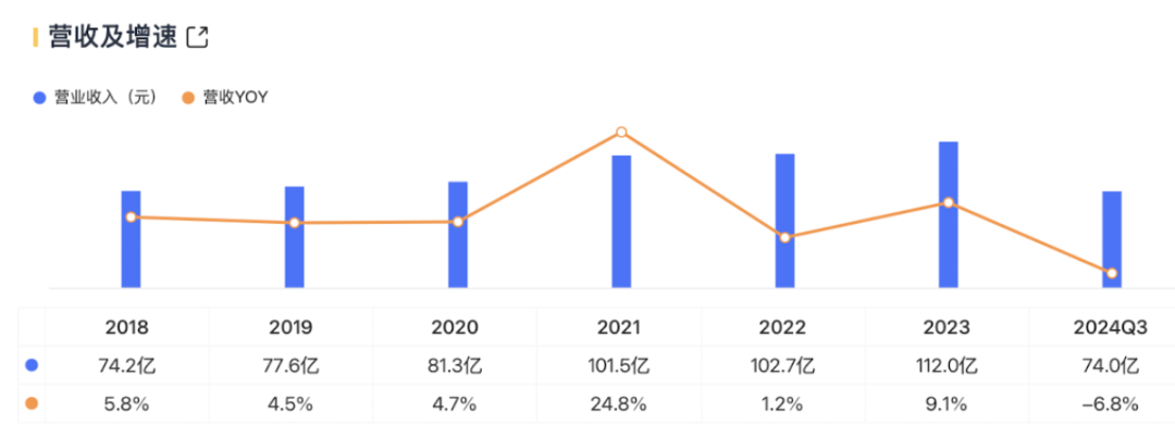 过去20年以来,老板电器收入增长未曾停止过,2024年却戛然而止:前三季度收入为267亿,同比下降6.78%。
