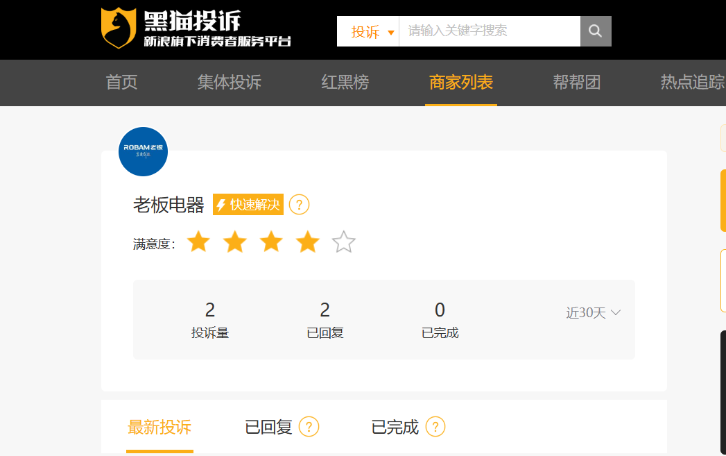 7月14日,据黑猫投诉平台,老板电器累计投诉量477起,已完成473起,投诉完成率约99%,投诉问题涉及产品质量,售后服务等。