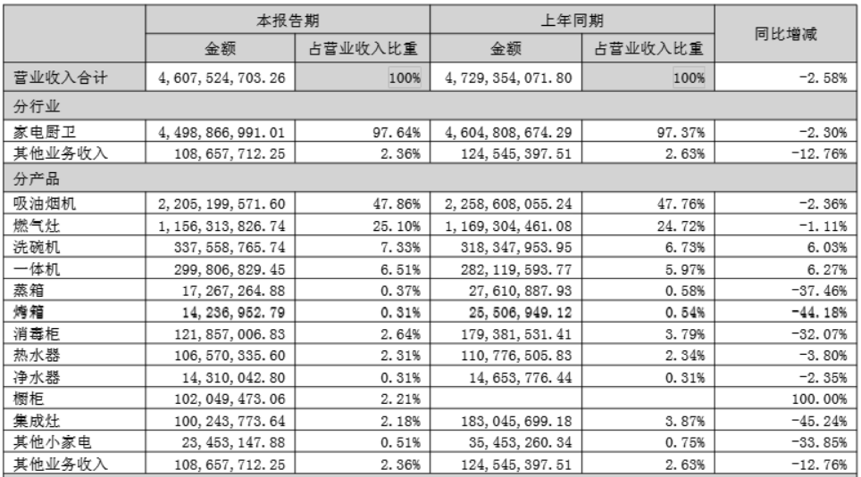 8月27日晚间,老板电器发布2025年半年度报告。报告期内,公司实现营收46.08亿元,归母净利润7.12亿元,分别同比下降2.58%和6.28%。