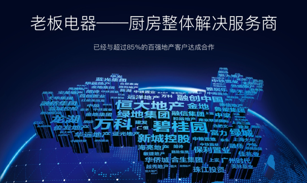 据老板电器官网显示,老板电器深耕精装修渠道十余年,致力于为房地产企业提供健康智能厨房整体解决方案,公司已与全国超过85%的百强房地产客户达成战略合作。
