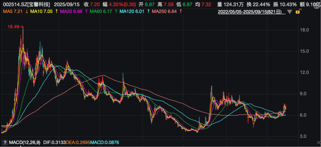 今年年初,宝馨科技股价在8元/股左右徘徊,但到了9月16日,报收7.04元/股,跌去13.6%。投资者似乎对宝馨科技追热门、蹭概念的“转型”不再感兴趣了。