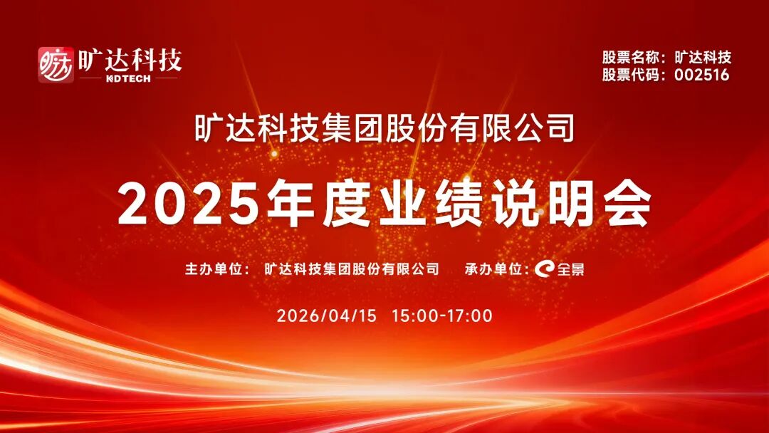 旷达科技集团股份有限公司2025年年度报告及摘要已于2026年3月28日在巨潮资讯网(http://www.cninfo.com.cn)上披露,为了让广大投资者进一步了解公司2025年年度报告和经营情况,公司将于2026年4月15日(周三)下午15:00-17:00在全景网举办2025年度报告网上业绩说明会。欢迎大家积极参与!