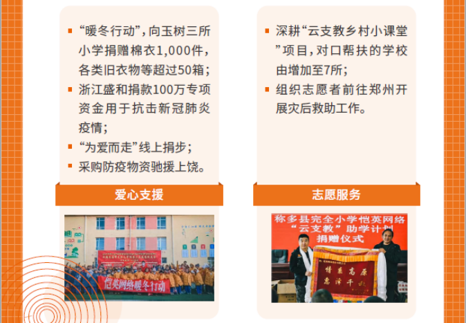 开展公益慈善活动、传递恺英温度是公司履行社会责任的重要方面。《报告》就公司在2021年度依托“文明云”“服务云”“云支教”等三个项目开展的各类社区活动、志愿公益活动及帮扶项目进展和成果进行了呈现和展示。2021年,“云支教乡村小课堂”项目获评第十四届时代营销盛典2021年度“优秀公益项目奖”,并入选《2021年CSR中国教育榜优秀案例选编》《2021人民网游戏公益典型案例》。