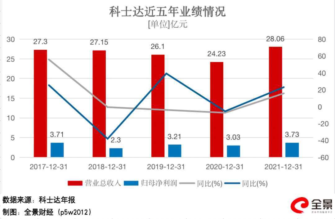 2021年,公司实现营业总收入28.06亿元,同比增长15.83%;实现归母净利润3.73亿元,同比大增23.13%,新能源业务持续恢复。
