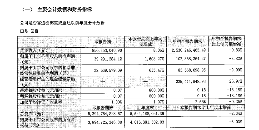 前三季度,齐峰新材营业收入为25.3亿元,同比减少0.83%;归属于上市公司股东的净利润为1.02亿元,同比减少3.82%。