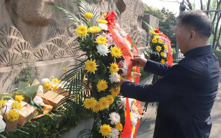 上午9时,全体人员肃立于泗洲公园抗战烈士纪念碑前。仪式开始,全体肃立脱帽,向为民族独立、人民解放英勇献身的革命先烈默哀一分钟,现场庄严肃穆。默哀毕,党员代表缓缓抬起花篮,敬献于纪念碑基座前,公司董事长易先云上前仔细整理缎带。