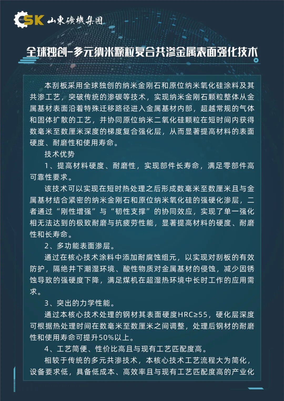 创新技术赢得行业认可,山东矿机展示了多项行业领先的创新技术。全球独创的多元纳米颗粒复合共渗金属表面强化技术使刮板耐磨性提升50%,整体锻造缸体大幅提升产品寿命。采用高分子复合材料制成的高分子托辊、酯聚氨酯包胶托辊、圆锥棍子承载托辊等技术工艺,可实现托辊耐酸碱、耐油、耐腐蚀低损耗,性能大大提升,适应性更强。