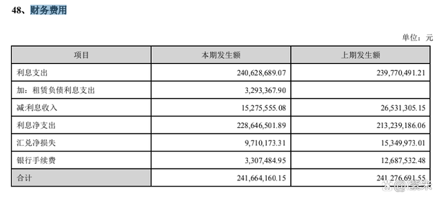 年报显示,公司财务费用为1323.43万元。其中,利息支出2.41亿,利息收入1527.56万元,汇兑损益971.02万元。