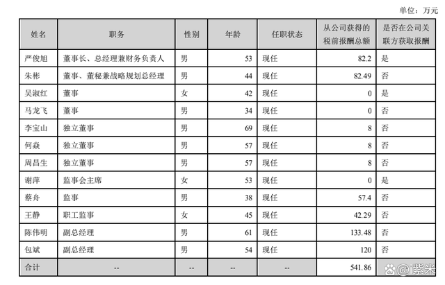 年报显示,报告期内公司实际支付董事、监事、高级管理人员报酬共541.86万元,董事长、总经理兼财务负责人严俊旭2021年从公司获得报酬为82.2万元,董事、董秘兼战略规划总经理朱彬2021年从公司获得报酬为82.49万元,副总经理陈伟明2021年在本公司领取薪酬为133.48万元。