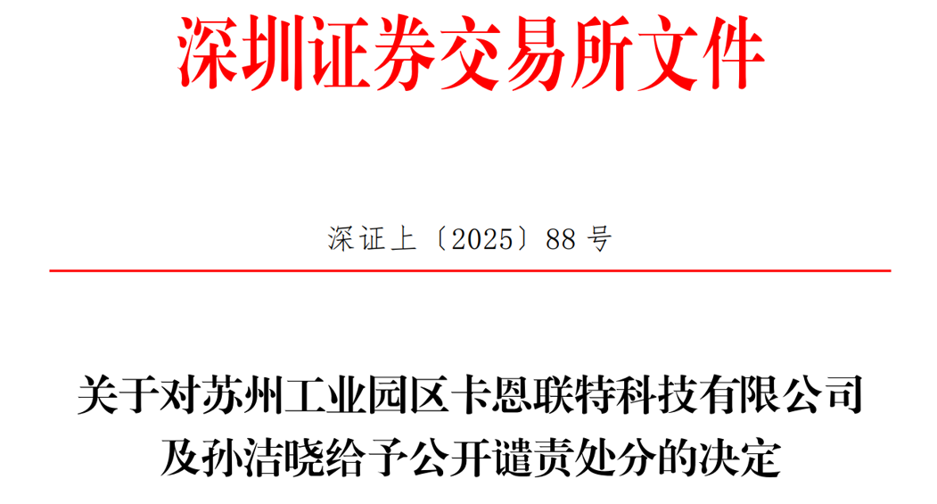 一、对苏州工业园区卡恩联特科技有限公司给予公开谴责的处分;