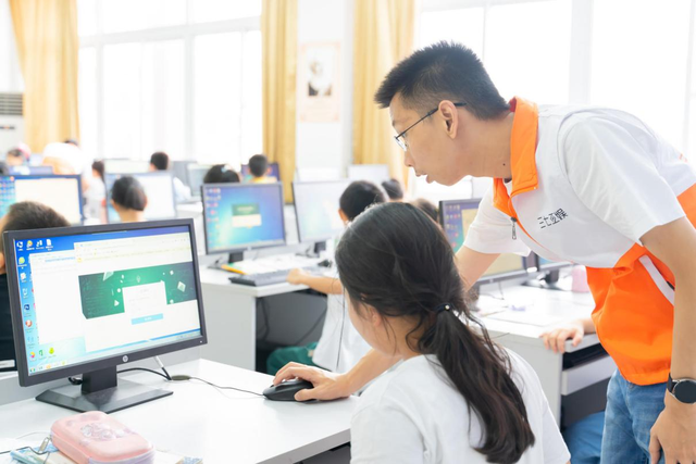 近日,三七互娱集团携手旗下编程教育品牌妙小程在安徽芜湖育才小学开展了国庆主题编程科普公益活动,该活动旨在通过“公益编程课”+“科技强国主题创作”的互动学习,让更多孩子接触基础编程知识,培养他们对计算机语言的兴趣,助力青少年数字素养提升。