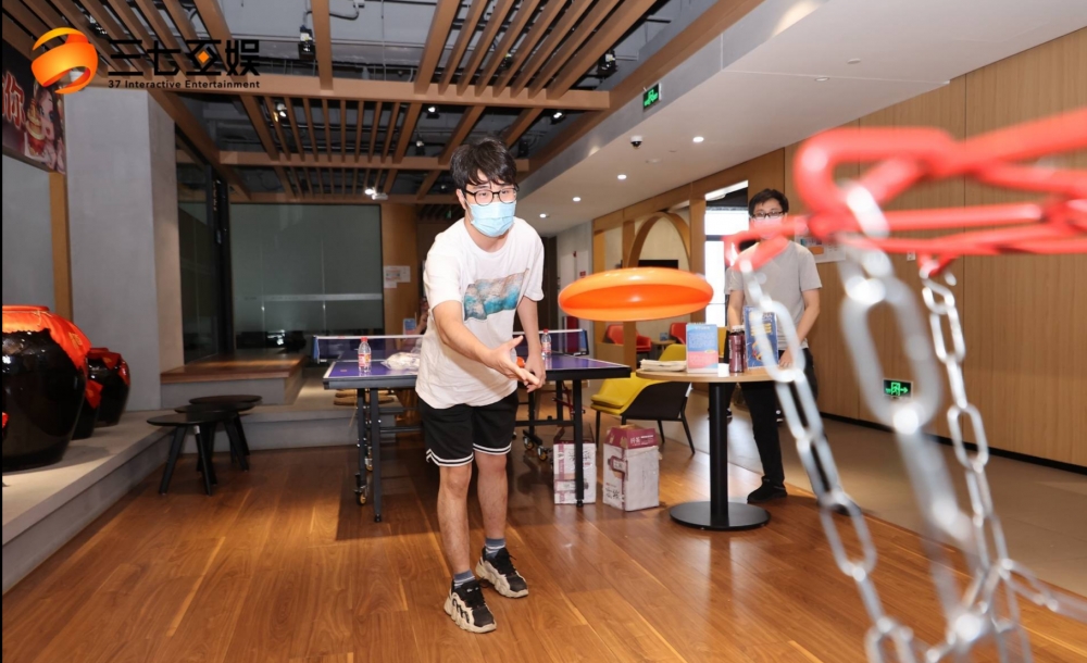 在“1024健康集市”体验区,三七互娱放置了“多喝热水”、“不宜久坐”、“健康饮食”、“合理运动”、“科学睡眠”等趣味标签进行健康生活方式的科普;并结合时下的网红运动飞盘运动的入门式体验互动,呼吁员工动起来,亲身感受运动的乐趣。