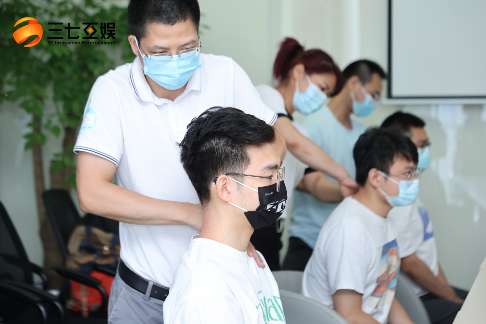 此外,三七互娱还邀请了专业人士为员工进行减压肩颈按摩,讲解肩颈保养的小知识,让员工能在日常工作中也能自己放松肩颈,将健康生活的理念传递给每个员工。