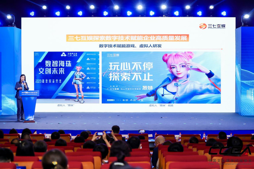 3月22日,由中国文化娱乐行业协会主办,中娱协数字文娱分会、天河区国家文化出口基地、天河中央商务区国家数字服务出口基地承办的“2023中国数字文娱行业大会”在广州市天河区举行。来自文娱领域专家、学者以及行业代表等汇聚一堂,共同探讨数字文娱行业的发展机遇与挑战,探索行业融合、创新发展新路径。三七互娱受邀出席,投资副总裁刘雨作为企业代表,发表主题为《数字技术拓宽文娱产业新边界》的演讲。
