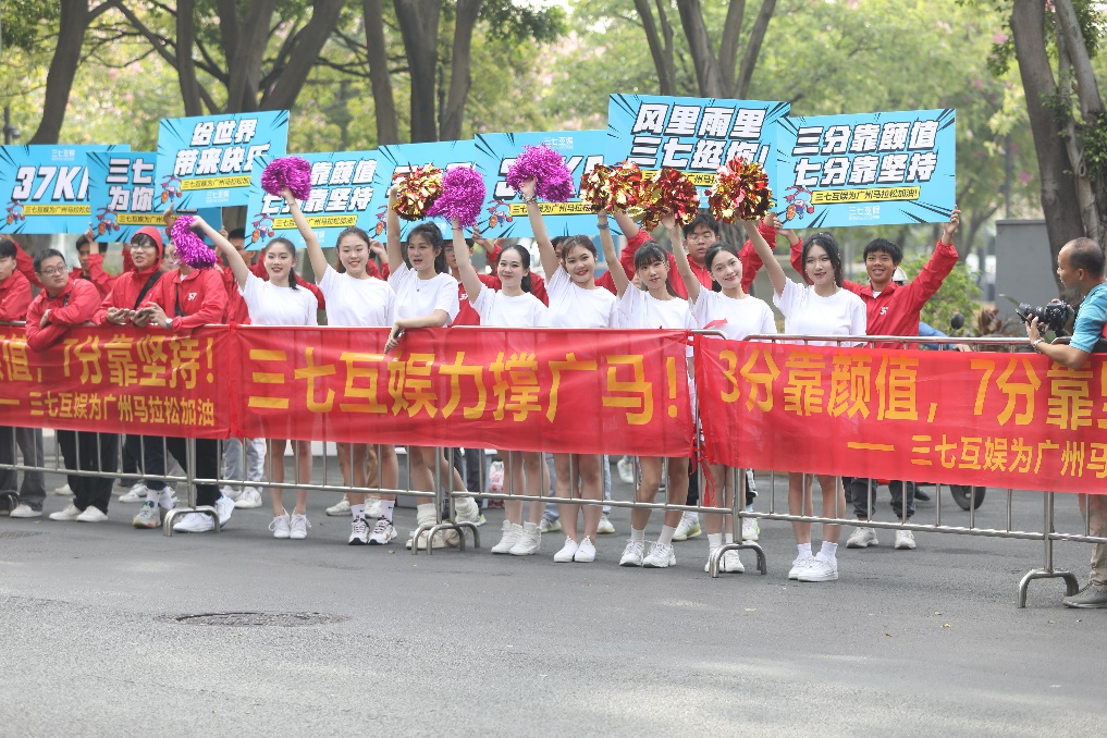 赛道之外,由三七互娱啦啦队志愿者们在7公里、17公里、27公里、37公里等广马沿途点准备了能量胶、水等补给,服务来自全国各地的参赛跑者,引起了广泛的关注,不少外地跑友驻足拍照,与啦啦队志愿者们合影互动。“今年的广州马拉松赛路线囊括了广州‘一河两岸’的多个地标,如南方大厦、海珠桥、猎德大桥、海心沙、广州塔等。这条线路展现了广州新中轴线的城市活力。作为在广州工作的我们,特别希望在这样的城市盛会中,通过我们志愿者的努力,去向更多人介绍广州这座城市的风采和活力,助力广州城市品牌形象的不断提升。”三七互娱啦啦队志愿者代表介绍道。