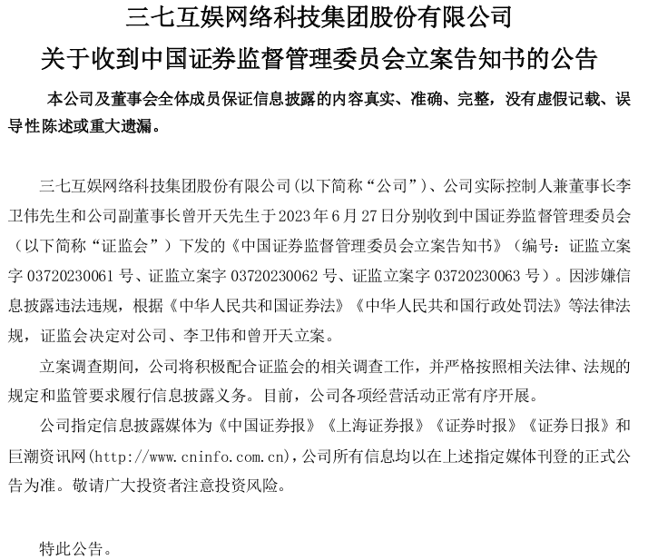 资料显示,自2023年6月起,三七互娱便陷入了高管立案调查的漩涡之中,公司创始人兼实际控制人李卫伟、副董事长曾开天等人因信披违规被证监会调查。尽管公司坚称“经营未受影响”,但市场的担忧并未因此消散。截至2025年3月,调查结果仍未明朗,已有法律团队针对此事件发起证券虚假陈述索赔,潜在赔偿金额或达数亿元。这一不确定因素如同悬在三七互娱头顶的达摩克利斯之剑,随时可能落下,给公司带来沉重打击。