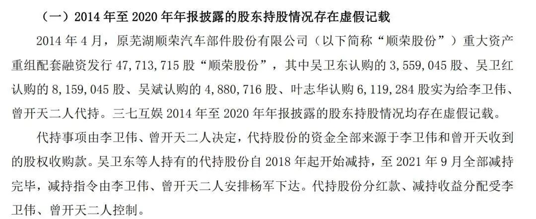 另一厢,10月31日晚,悬在头顶两年半的“靴子”也终于落地。一纸《行政处罚事先告知书》,将这个A股“游戏一哥”从2014年至2021年间的多项信披违法违规行为全至于镁光灯下,包括虚假记载、隐瞒代持、多起重大关联交易未披露等。