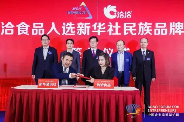 仪式上,洽洽食品正式登台签约,成为入选新华社民族品牌的第一家坚果企业,持续巩固行业领先地位。