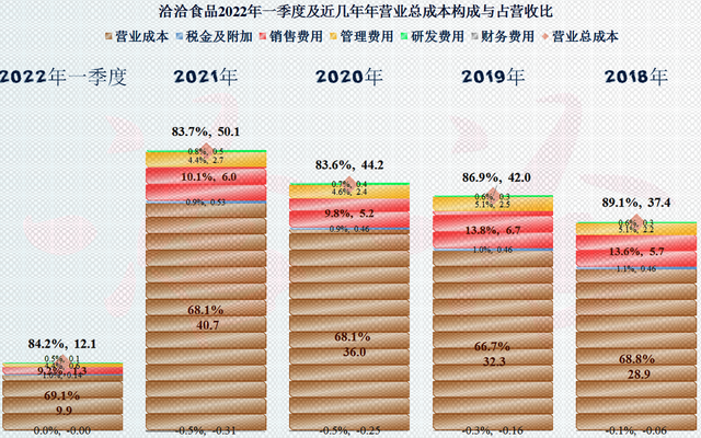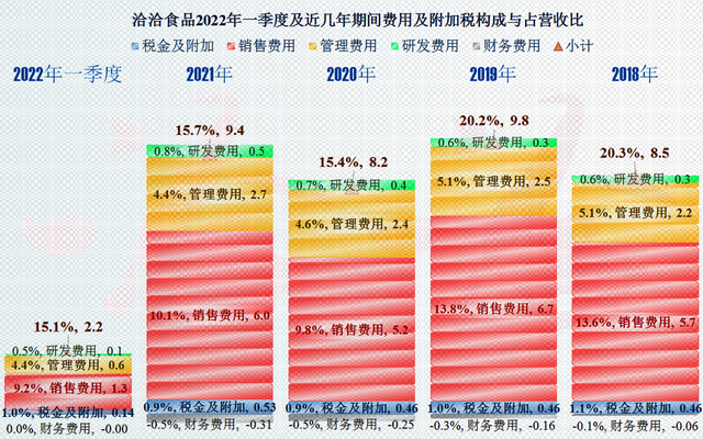 从期间费用占比的下降来看,虽然有会计准则上调整运费的影响,但期间费用随营收增长而占比下降的趋势已经结束,且出现了反转。从现有的大环境来看,估计成本费用的进一步上升,是大多数公司无法避免的事,也包括洽洽食品。