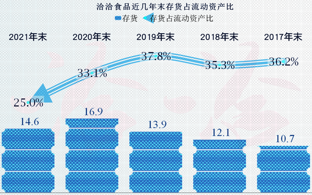 第三大流动资产存货为14.6亿元,占流动资产比为25%,比2020年下降了2.3亿元,占比也下降了8.1个百分点,前面就说过其较好的净现金流就是靠其增加净利润的同时还可以降低存货的占用,这确实比较厉害。