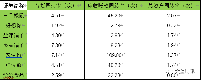 值得注意的是,在《洽洽食品:洽洽食品股份有限公司公开发行可转换公司债券2022年跟踪评级报告》中指出,2021年,与同行业上市公司相比较,公司整体经营效率有待提高。2021年,公司存货周转次数由2.34次增长至2.59次,应收账款周转次数由23.93次下降至22.28次,总资产周转次数由0.85次下降至0.80次。考虑到经营模式的不同,与同行业上市公司相比,公司经营效率有待提高。