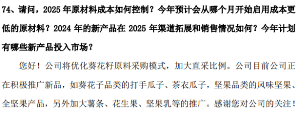 ¡¡¡¡Ç¢Ç¢Ê³Æ·Éú²ú¾ÓªËùÐèµÄÔ²ÄÁÏÖ÷ÒªÊÇÅ©²úÆ·£¬°üÀ¨¿û»¨×Ñ¡¢¼á¹ûµÈ¡£2023ÄêºÍ2024Ä꣬¹«Ë¾ÓªÒµ³É±¾ÖУ¬Ö±½Ó²ÄÁϵĽð¶î³¬¹ý40ÒÚÔª£¬Õ¼ÓªÒµ³É±¾µÄ±ÈÖØ¾ù³¬¹ý83%£¬·´Ó³¹«Ë¾ÔÚÔ²ÄÁ϶˲ɹº¶îÕ¼±È½Ï¸ß¡£