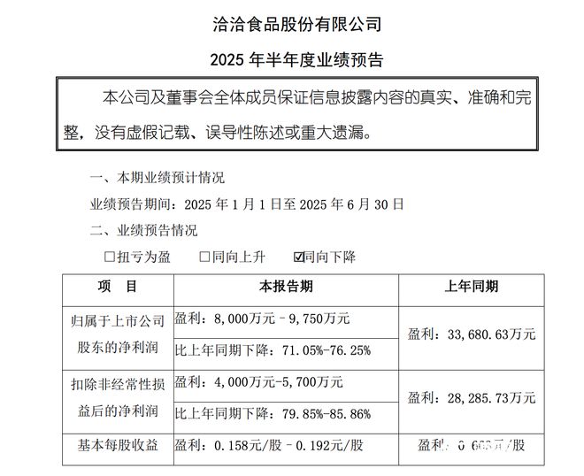 去年业绩回暖的洽洽食品,今年上半年净利润大幅下跌。