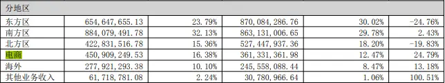 分地区来看,洽洽食品上半年在东方区、北方区营业收入呈下降趋势,分别同比减少24.76%和19.83%。电商和海外增势良好,分别同比增加24.79%和13.18%。