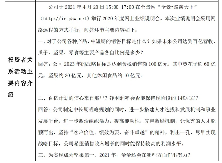 图源: 洽洽食品 股份有限公司投资者关系活动记录表(编号:2021-003)