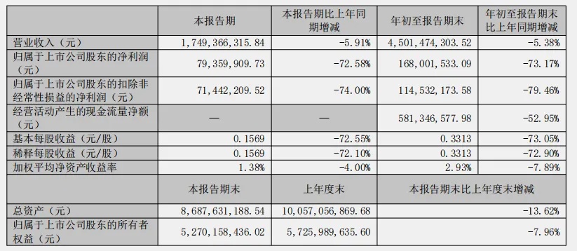 洽洽食品 2025年第三季度报告显示,其2025年初至报告期末,实现营业收入45.01亿元,同比下降5.38%;归属于上市公司股东的净利润为1.68亿元,同比大幅减少73.17%;扣除非经常性损益后的净利润进一步降至1.15亿元,同比下滑79.46%。