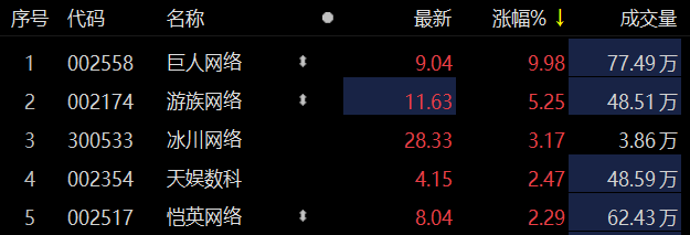 1月10日,游戏股走强,截至14:47,巨人网络涨停,游族网络、冰川网络等涨超3%。