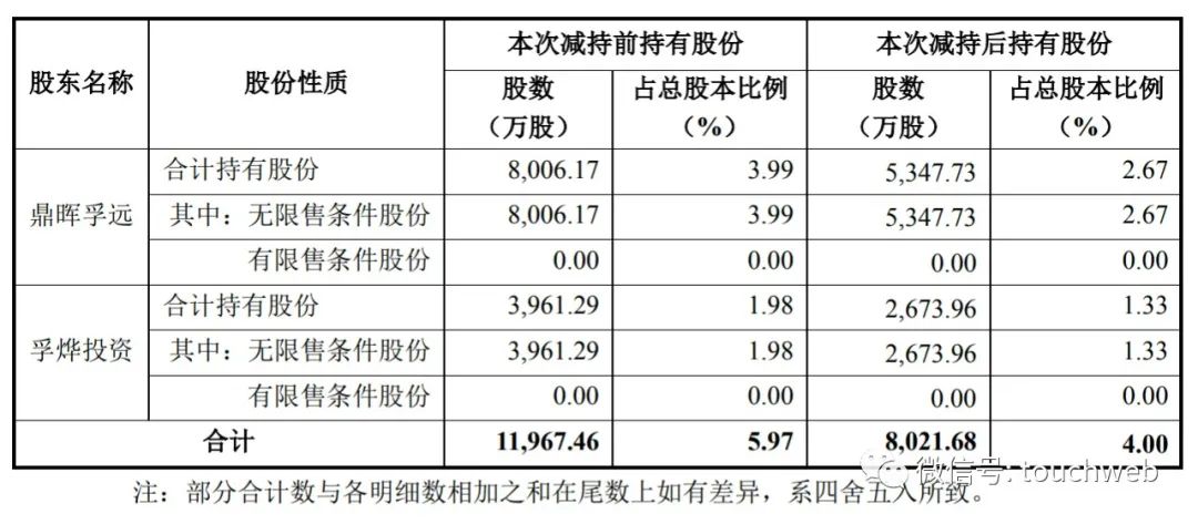 此次套现前,鼎晖孚远及孚烨投资一共持股为5.97%,此次套现后,仍一共持有4%股权。