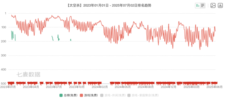 此外,2023年1月,巨人网络太空狼人杀手游《太空杀》上线,其在上线首日取得国区iOS游戏免费榜第12名的成绩后,其排名便出现下滑,目前已跌至100名以下。2024年,《太空杀》国区iOS预估收入仅为40.92万美元。