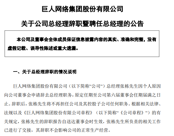 但近年来,巨人网络强调年轻化团队管理。随着元老级人物的离开和回归,也正因此,在张栋离职公告与财报同时抛出后,巨人网络也受到了行业关注。