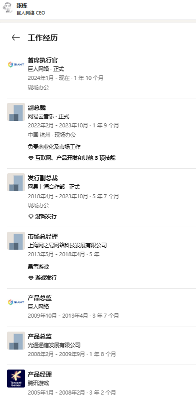 据领英显示,张栋的履历非常丰富,拥有近20年的游戏行业从业经验。最早在2005年进入腾讯游戏担任产品经理,并在2009年曾加入巨人网络作为产品总监,后来在网易曾担任暴雪游戏市场总经理,还曾在网易上海合作部担任发行副总裁、在网易云音乐担任副总裁。