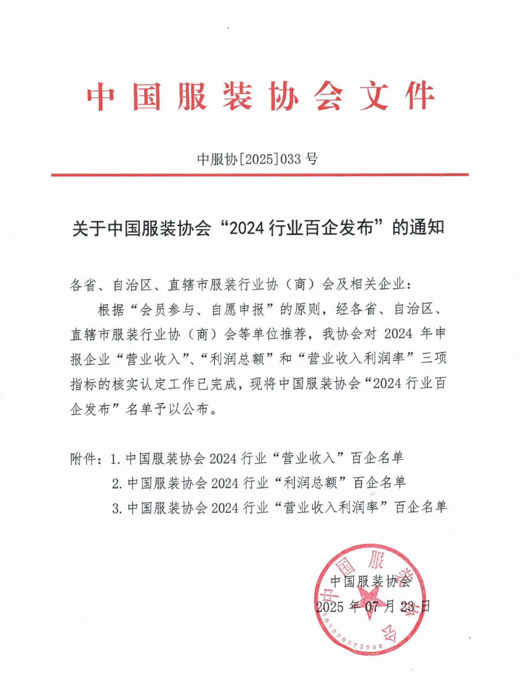 中国服装协会“2024 行业百企发布”名单正式公布。森马服饰凭借卓越的市场表现,成功入围“营业收入”、“利润总额”和“营业收入利润率”三项指标榜单,再次彰显其在国内服装行业的领军地位。