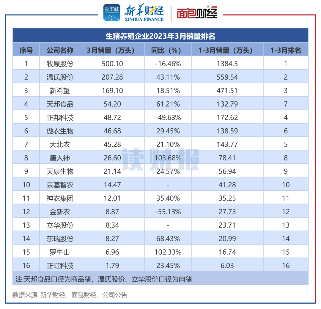 销量:牧原、温氏保持领先唐人神、罗牛山同比增速超100%