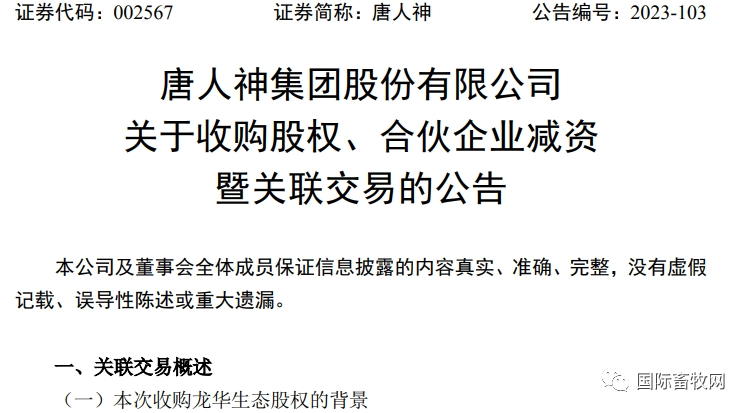 唐人神表示鉴于目前龙华生态已完成项目建设,为降低龙华生态资金成本,减少潜在关联交易事项,唐人神拟收购唐人神长银持有的龙华生态 73.20%股权,唐人神长银在取得前述股权转让款后向平安汇通等支付投资退出款。