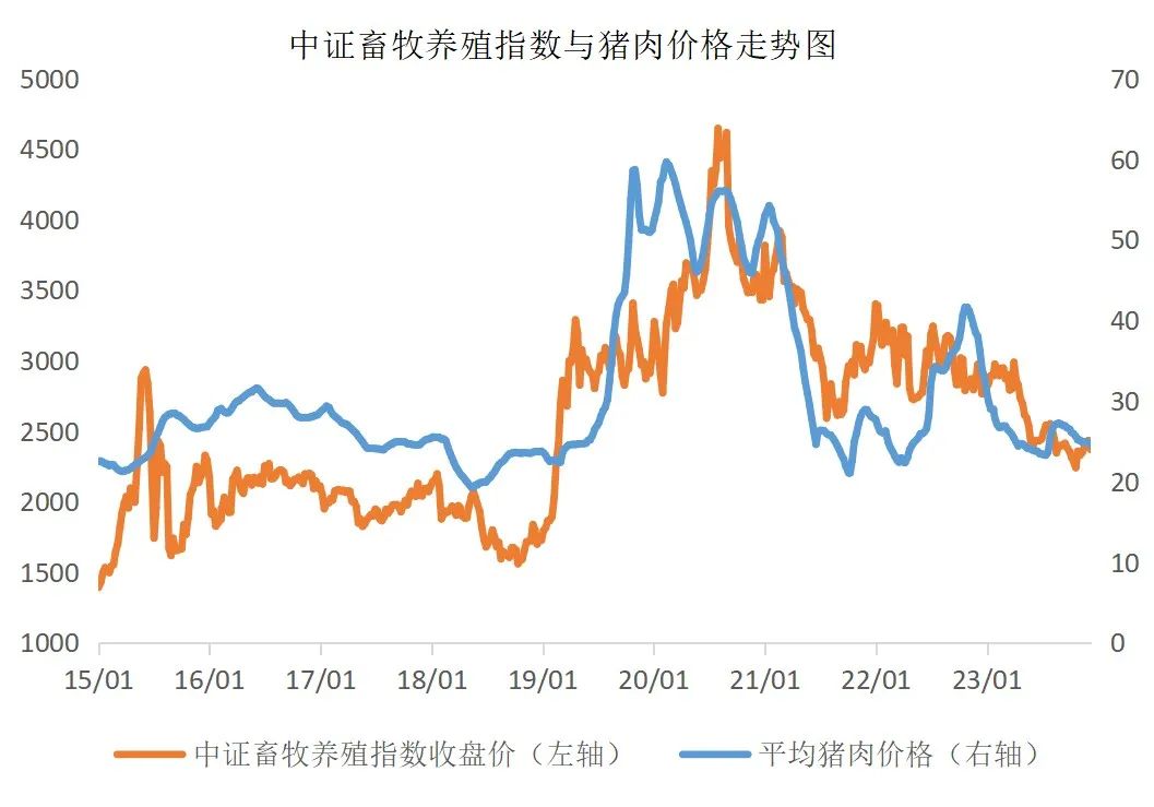 畜牧养殖ETF(516670)跟踪的中证畜牧养殖指数(930707.CSI)从沪深A股中选取涉及畜禽饲料、畜禽药物以及畜禽养殖等业务的上市公司股票作为样本股,以反映畜牧养殖相关上市公司股票的整体表现。目前指数成分股35只,全面覆盖畜牧养殖全产业链的同时,在生猪养殖核心赛道重点布局。根据历史表现,畜牧养殖板块根据供需关系长期呈现明显的周期性,整体和猪价呈现强相关性。