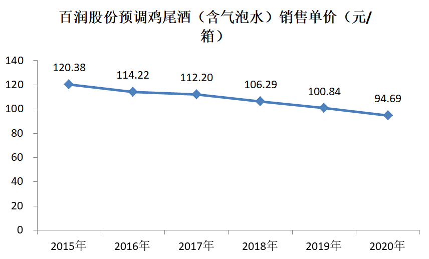 虽然在税率上未有影响,但从百润股份过往的预调鸡尾酒平均销售价格上来看,其平均售价却处于连年下滑的态势。记者以百润股份历年年报披露的预调鸡尾酒销售收入和销量计算,在2015年度至2020年度,百润股份的预调鸡尾酒(含气泡水)平均售价分别为120.4元/箱、114.2元/箱、112.2元/箱、106.3元/箱、100.8元/箱和94.7元/箱。