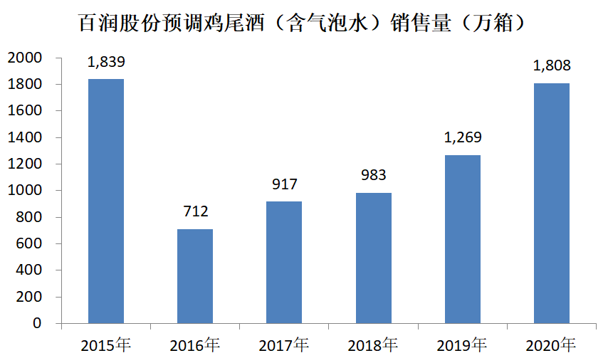 记者注意到,百润股份此前曾经出现过销量大幅度下滑的局面。2015年度,百润股份的预调鸡尾酒销量高达1839万箱,但这个销量在随后的5年时间都没有被逾越。随后的2016年度,百润股份的预调鸡尾酒销量大幅下降至712万箱。