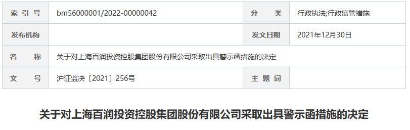 证监会网站近日公布了关于对上海百润投资控股集团股份有限公司(简称“百润股份”,002568.SZ)采取出具警示函措施的决定。