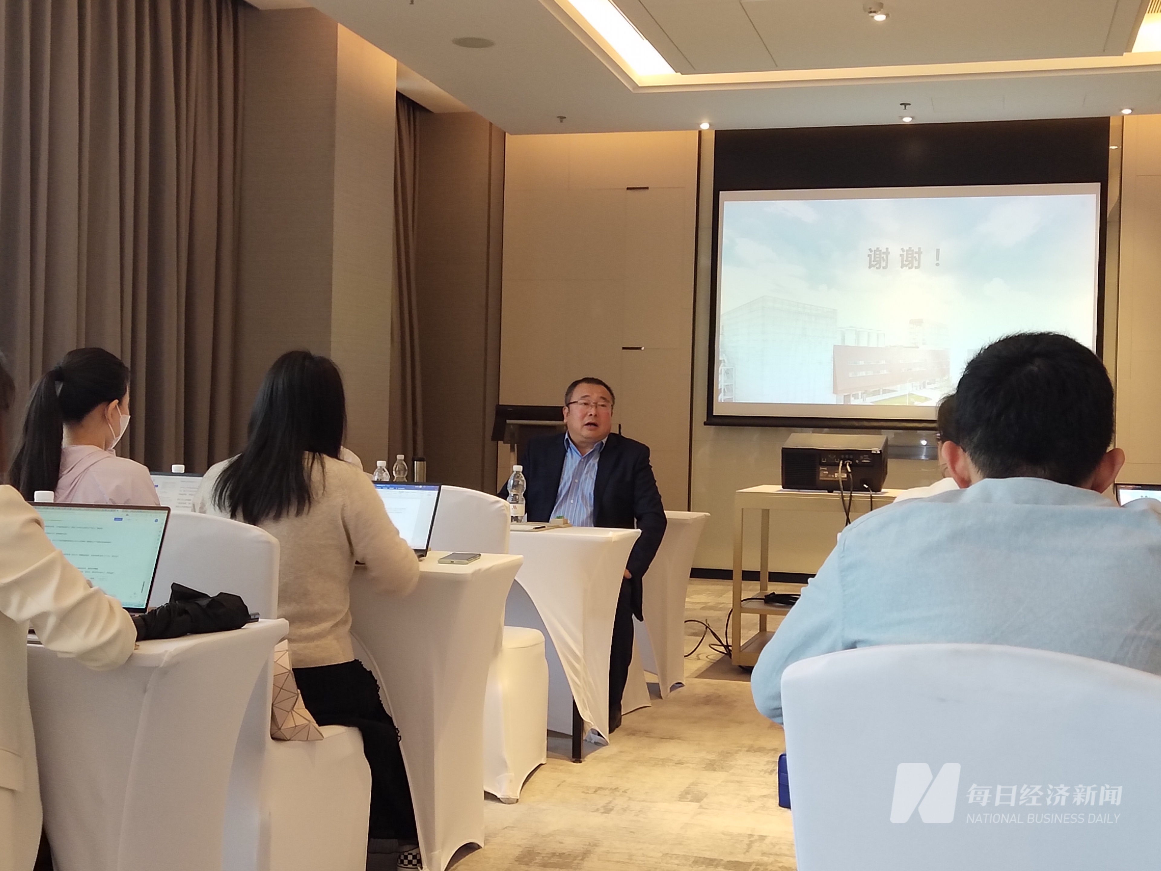 百润股份董事长刘晓东(着深色西装者) 图片来源:每经记者张韵摄