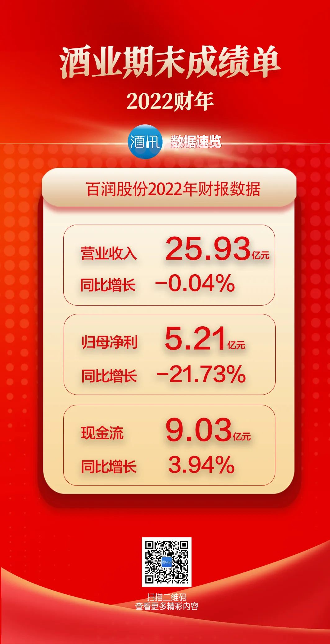 事实上,业绩飘高和股价“谦虚”都和2022年这一参照系有关。2022年,百润股份营收25.93亿元,微降0.04%;净利润5.21亿元,下滑21.74%。